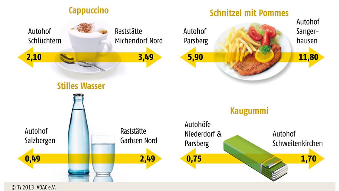 Die Einrichtungen schnitten insgesamt gut ab. Insbesondere in puncto Service, Familienfreundlichkeit und Sanitäranlagen konnten sie überzeugen. Aber Qualität hat auch während der Pinkel-Pause ihren Preis. Im Testvergleich zeigt sich: Beim Einkauf am Raststätten-Kiosk lässt man im Schnitt etwa 20 Prozent mehr Geld als im Autohof-Shop für die gleichen Produkten. Auch beim gastronomischen Betrieb lässt sich an Autohöfen sparen. Dort zahlt man immerhin rund zehn Prozent weniger als bei den Raststätten.