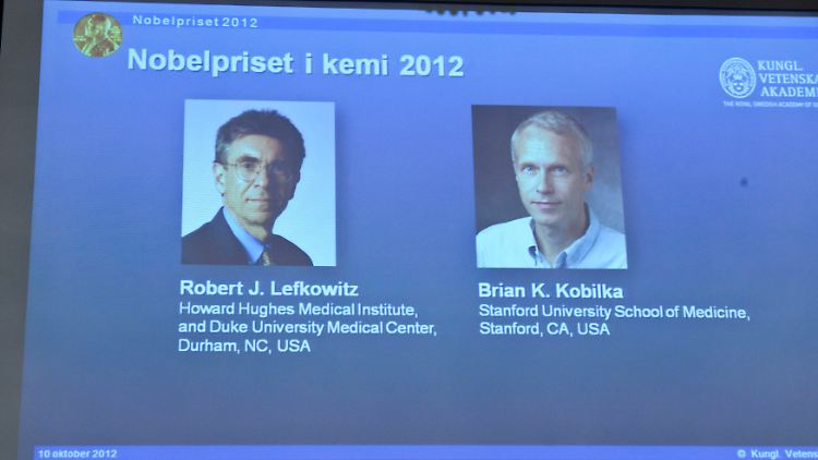Der Nobelpreis für Chemie geht in diesem Jahr an Robert Lefkowitz und Brian Kobilka aus den USA. Sie erhalten den Preis für die Erforschung der Kommunikation von Milliarden von Körperzellen. Das erläuterte die Königlich-Schwedische Akademie der Wissenschaften in Stockholm.