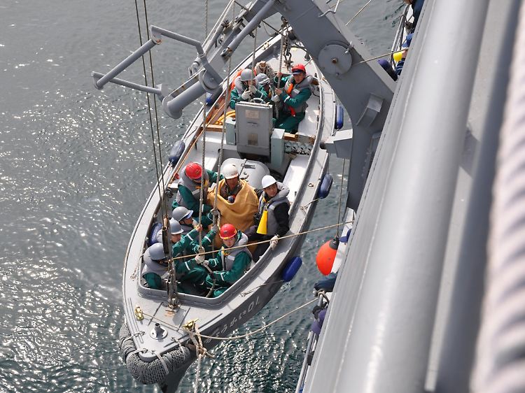 Die Marine zog den 60-Jährigen heute 15 Kilometer vor der Küste des Landes aus dem Wasser, wie die Nachrichtenagentur Jiji unter Berufung auf die Behörden berichtete. Er war demnach bei Bewusstsein und in "guter Verfassung" und wurde per Helikopter in ein Krankenhaus gebracht.