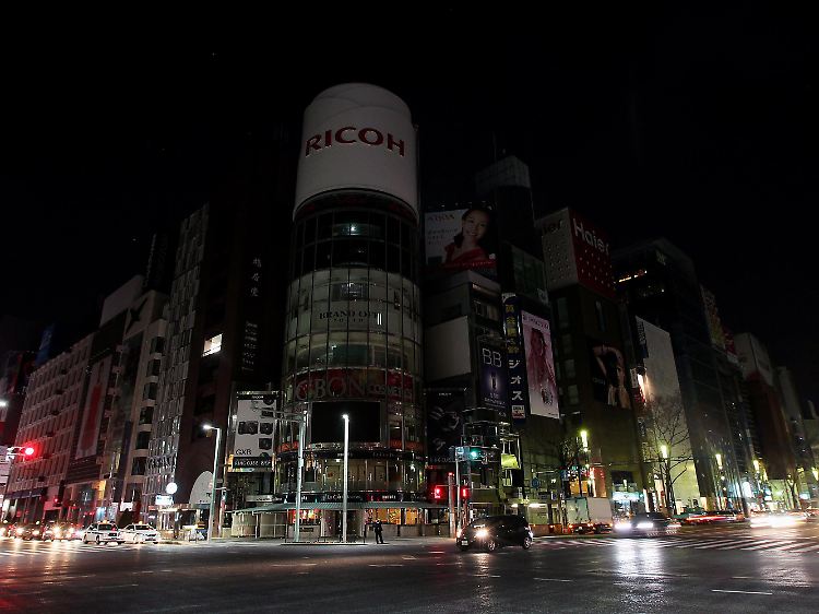 Schummerlicht wegen Stromsparen: Ginza, das sonst so belebte Einkaufsviertel von Tokio, ist derzeit fast menschenleer.