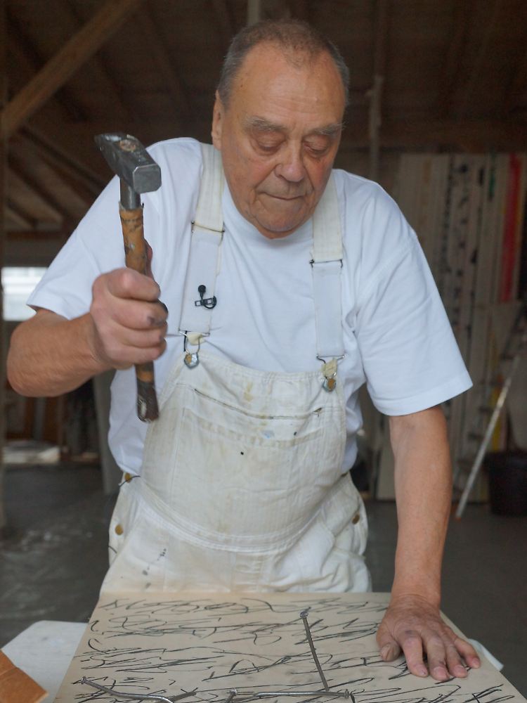 Objektkünstler Uecker ist bekannt für die Verwendung von Handwerksmaterialien für seine Kunstwerke.