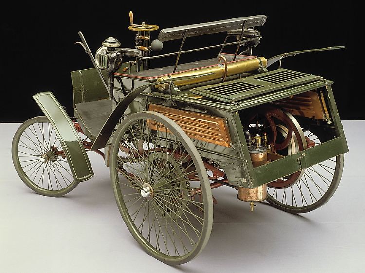 1889: Wilhelm Maybach, der geniale Konstrukteur an Gottlieb Daimlers Seite, entwickelt den Stahlradwagen und damit ebenfalls, wie der Benz Patent-Motorwagen, ein vom Kutschenbau gelöstes Chassis. Seine Premiere feiert der moderne Daimler Stahlradwagen auf der Weltausstellung in Paris. Der neue Zweizylinder-V-Motor ist der bahnbrechend moderne Antrieb für den elegant wirkenden Stahlradwagen, so genannt wegen seiner Eisenräder. Allerdings bringt das Publikum dem Stahlradwagen nicht das erwartete Interesse entgegen