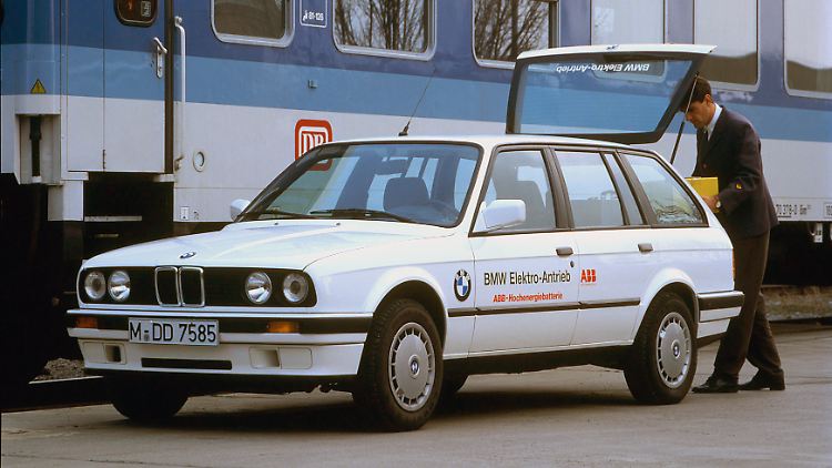 Für das Forschungsprojekt "Elektroauto mit Hochenergie-Batterie" werden BMW 3er auf elektrischen Vorderradantrieb umgebaut und mit Natrium-Schwefel-Batterien (22 kWh) ausgestattet für 150 Kilometer innerstädtische Reichweite. Und das bereits im Jahr 1987.
