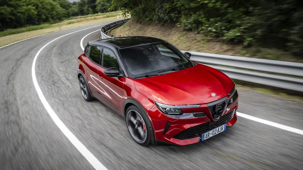 Die Grundzutaten des Batterie-Sportlers sind dabei durchaus ansehnlich. Die Italiener haben der im Konzern vielfältig genutzten CMP-Plattform von Stellantis einen schicken und eigenständigen Mini-Crossover abgerungen. Mit prägnantem "Scudetto"-Kühlergrill, schwungvoller Schulterlinie und coupéhaftem Dachverlauf ist der kleine Alfa sicherlich das dynamischste Familienmitglied im Kreis von Schwestermodellen wie Opel Mokka und Fiat 600. Das gilt für die Verbrennervarianten genauso wie für den Basis-Stromer - und durchaus auch für das an der Spitze der Baureihe platzierte elektrische "Veloce"-Modell.