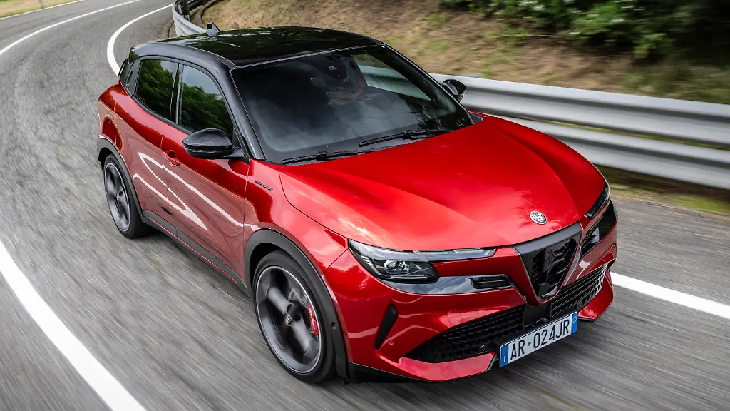 Der Alfa steht auf der gleichen Technik-Plattform wie etwa Jeep Avenger und Fiat 600, lässt sich das aber zumindest von außen nicht ansehen. Auffällig und eigenständig sind nicht nur die Front mit dem typischen Scudetto, sondern auch die geschwungenen Flanken und das prägnante Heck. Die Technik wiederum stammt aus dem Konzernbaukasten, wobei Alfa aber bei der elektrischen Antriebsleistung vorläufig ein Ausrufezeichen setzen darf.