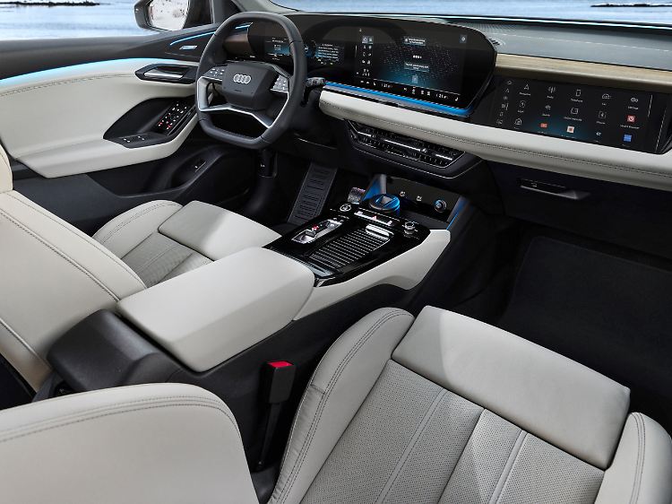 Am Steuer stellt sich eher ein Limousinengefühl ein. Das sportliche Gestühl ist nicht zu straff, die Materialien rundum ansehnlich. Der Q6 umgibt den Fahrer wie ein Kokon. Der Beifahrer kann derweil sein Smartphone über einen eigenen, optionalen 10,9-Zoll-Touchscreen verbinden und von hier aus eine Musik-App starten oder Nachrichten lesen.