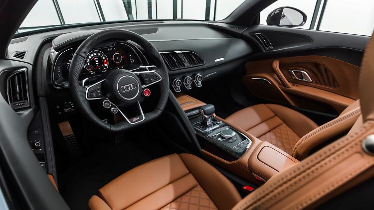 Künftig kann der Kunde zwischen drei Optikpaketen wählen: Titan (Serie beim Performance), schwarz glänzend oder Carbon glänzend. Optional besteht die Möglichkeit, die Audi-Ringe auf der Motorhaube sowie die V10-Signets auf den vorderen Kotflügeln in Schwarz statt verchromt zu bekommen. Das sieht besonders schick in Kombination mit der neuen Speziallackierung Kemoragrau aus, die erst bei bestimmtem Lichteinfall ihren Metallic-Glanzeffekt recht eindrucksvoll zum Besten gibt. Farbliche Neuerungen bietet auch der Innenraum. Künftig kann der Kunde für diesen die Farben Pastellsilber mit felsgrauen Kontrastnähten, Palominobraun mit stahlgrauen Nähten und Schwarz mit utopiablauen Nähten bestellen. Preise nennt Audi noch keine. Die dürften sich aber mindestens auf dem Niveau der Vorfacelift-Version bewegen. Das heißt 166.000 Euro für das Coupé und 179.000 Euro für den Spyder.