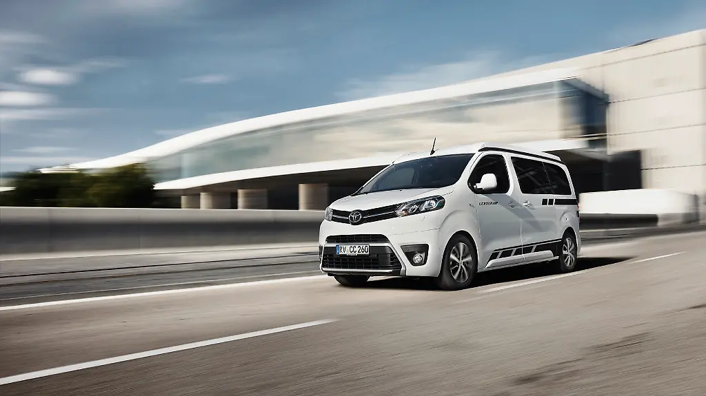 In der Basisversion für 42.990 Euro wird der zum Crosscamp ausgebaute Toyota Proace Verso Family mit dem 120 PS starken 1,5-Liter-Vierzylinder-Diesel und einem manuellen Sechsganggetriebe ausgeliefert. Optional ist aber auch der größere 2,0-Liter-Selbstzünder in zwei Leistungsstufen mit 150 PS (2249 Euro Aufpreis) oder 180 PS erhältlich (6499 Euro). Letzterer ist serienmäßig mit 8-Stufen-Wandlerautomatik kombiniert. Alle Motoren sind mit Start-Stopp-Automatik ausgerüstet, erfüllen mit der SCR-Abgasreinigung die Schadstoffnorm Euro 6d-temp und sind daher vor möglichen Fahrverboten gefeit.