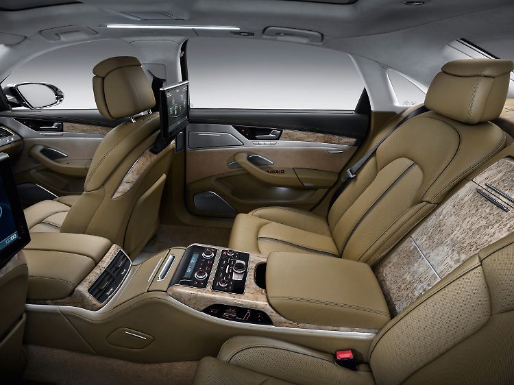 Das "gefahren werden" ist ohnehin die wahre Bestimmung des A8-Besitzers, denn der Fond lässt sich mittels diverser Zusatzausstattungen zur veritablen Wellness-Lounge umbauen. Für die Kleinigkeit von 14.000 Euro – also etwa zehn Prozent des Grundpreises vom A8L W12 – ist für den hinten rechts sitzenden Entscheider ein Komfortsitz zu haben, inklusive Massagefunktion und elektrisch ausfahrbarer Fußablage in der Lehne des Beifahrersessels, wo auch gleich die Kopfstütze zur besseren Sicht nach vorn abgeklappt wird. Das Bord-Entertainment-System mit 10,2-Zoll-Monitor und separater MMI-Steuerung in der Edelholz-Konsole zwischen den Fondsitzen sorgt für Ablenkung vom profanen Verkehrsgeschehen. Fast überflüssig zu sagen, dass an Bord Internet verfügbar ist und auf dem Display Börsenkurse oder die Zimmertarife von Fünf-Sterne-Hotels abrufbar sind.
