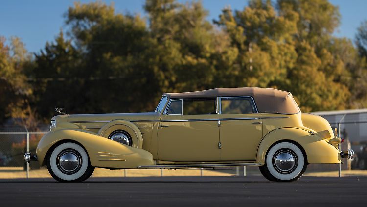 Jüngster V16 und auch optisch deutlich moderner als seine anderen zur Auktion stehenden Sechszehnzylinder-Brüder ist ein von Fleetwood karossiertes Convertible Coupé, von dem lediglich sieben gebaut wurden und nur noch drei existieren. Zu den Besonderheiten des in den 1990er-Jahren restaurierten Luxusliners gehört ein Original-Autoradio. Als erwarteten Erlös gibt Sotheby's 200.000 bis 250.000 Euro an.