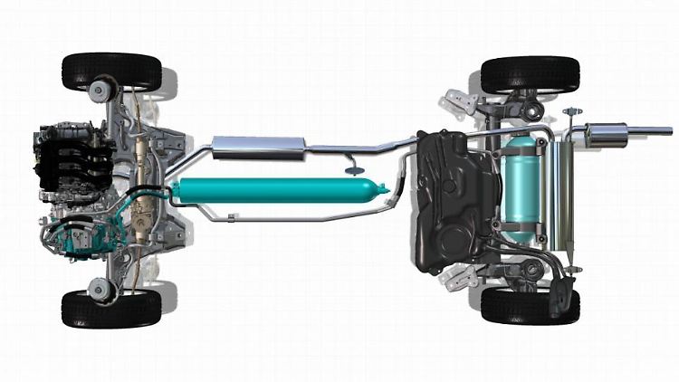 Und tatsächlich präsentieren die Franzosen in der Nähe von Düsseldorf eine innovative Hybridlösung für einen Benziner, der den Weg für das 2-Liter-Auto ebnen könnte: einen neuartigen Vollhybrid-Antriebsstrang, der mit Benzin und Druckluft arbeitet. Das Prinzip ist so simpel und genial, dass man fast meinen möchte, man hätte selber darauf kommen können. Statt der bekannten Hybridbatterien wird ein Druckluftspeicher genutzt, der unter dem Kofferraum angebracht ist und statt eines Elektrogenerators arbeitet eine Hydraulikpumpe, die wiederum unter dem Chassis verbaut wird.