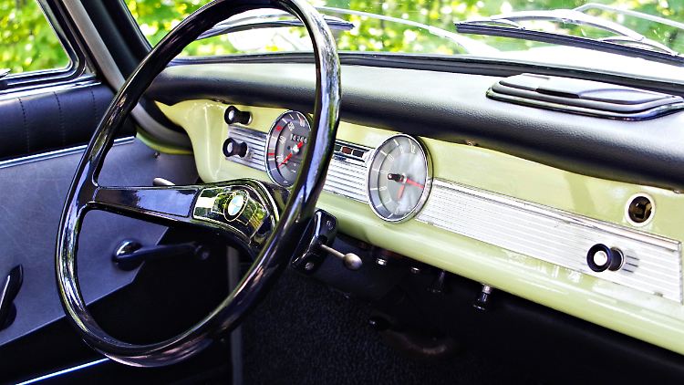 Das hier bewegte Exemplar aus dem Jahr 1964 wartet schon mit dem erstarkten Grundmotor auf, das bedeutet, statt 30 schieben das 630 Kilogramm-Leichtgewicht nun 32 PS an. Das fühlt sich in der Praxis ganz munter an, das Minimal-Triebwerk des "Volks"-BMW geht sogar mit einer gewissen Bulligkeit zu Werke, knattert sich mit Elan durch jede einzelne der vier Übersetzungsstufen, die verhältnismäßig leichtgängig per Mittelschalhebel rasten. Dass sich die Anzeige des kleinen Rundtachos in dem fast schon stylischen Blecharmaturenbrett nüchtern betrachtet doch eher gemächlich in Bewegung setzt, liegt an dem Lautstärkepegel im Innenraum.