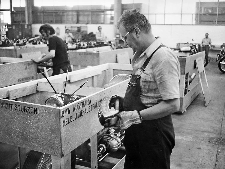 Angefangen hat das Werk Spandau mit einem Bruchteil davon: Ganze 1605 Motorräder wurden im Eröffnungsjahr 1969 ausgeliefert. Es hatte freilich erst im September begonnen, und zwar mit dem Modell R 60/5. In den letzten Monaten des Jahres folgten dann die sportlichere R 75/5 und die R 50/5 als leistungsreduziertes Behördenmodell. Maximal 30 Motorräder konnten die 400 in Spandau beschäftigten Mitarbeiter pro Tag bauen.