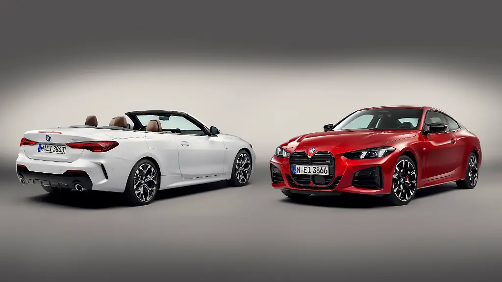 BMW gönnt den zweitürigen Karosserie-Typen seiner 4er-Familie zum Frühjahr 2024 eine Auffrischungskur. Die XL-Nieren bei Cabriolet und Coupé bleiben im Wesentlichen erhalten. Vom Vieraugen-Tagfahrlicht hat sich die 4er-Reihe verabschiedet. Neue Leuchtelemente vorn und hinten mit einer nun vertikal ausgerichteten Tagfahrlicht-Grafik sorgen für Frische.