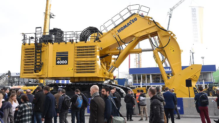 Für die ganz großen Maschinen werden selbst große Messehallen zu klein - sie stehen auf dem Freigelände: Riesige Bagger, Planierraupen, Mulchfräsen, Kräne, Arbeitsbühnen, hohe Bohrkräne, gewaltige Lastenkräne, ja ganze Betonwerke haben die Aussteller in den vergangenen Wochen hier aufgebaut. Besucher können mit einem Bauaufzug einen 24 Meter hohen Selfie-Turm hochfahren und sich dann vor den Baumaschinen fotografieren lassen.