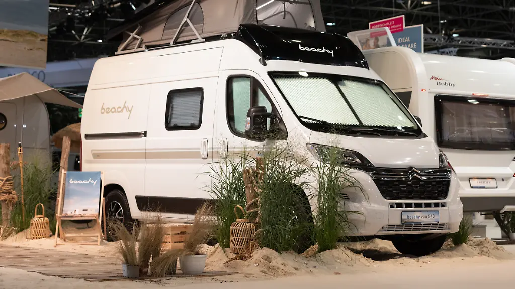 Der in drei Grundriss-Varianten verfügbare Strand-Wohnwagen wird bereits zu Preisen ab 12.000 Euro angeboten, die ersten Exemplare werden noch in diesem Jahr ausgeliefert. Im Gegensatz zum Beachy-Van 540, der als ausgebauter Kastenwagen auf Basis eines Citroën Jumpers zunächst nur als Studie in Düsseldorf stand. Mittlerweile hat Hobby aber bestätigt, dass die Serienausführung des Camper-Vans als zweites Modell der eigenständigen Marke Beachy im nächsten Sommer an den Start gehen soll.