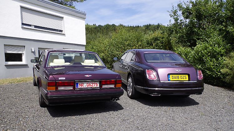 40 Jahre liegen zwischen dem Bentley Turbo R LWB und dem Bentley Mulsanne EWB. Aber die Farbe passt noch immer.