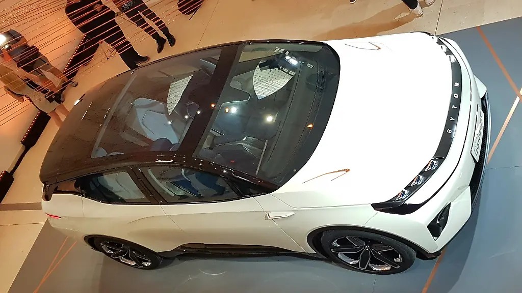 Für das Verändern aller Spielregeln sieht der Byton auf den ersten Blick eigentlich erstaunlich normal aus: klassisches SUV, zwei Meter breit, 4,85 Meter lang, Radstand 2,95 Meter, 550 Liter Kofferraum. Okay, statt Außenspiegeln gibt's Kameras, was ab 2019 in Europa erlaubt ist. Türöffner fehlen auch, stattdessen soll der Byton seinen Besitzer am Gesicht erkennen - per Video. Vorn leuchten zwischen den LED-Scheinwerfern Lichtbänder, die Fußgängern oder Querverkehr das Näherkommen anzeigen. Schließlich schleicht der Byton ja geräuschlos an die Kreuzung.