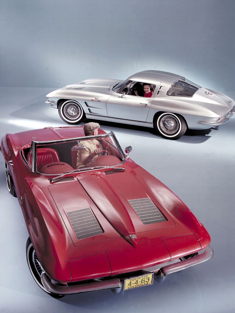 1963: Im Sommer debütiert der Corvette-Modelljahrgang 1964. Äußeres Kennzeichen ist der Verzicht auf das geteilte Heckfenster. Die Optionenliste umfasst jetzt Klimaanlage und ein Autoradio mit Sendersuchlauf. Neu ist die Sonderserie Corvette Grand Sport für Motorsportenthusiasten