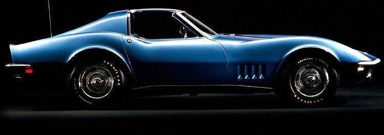 Die dritte Corvette-Generation (C3) basiert auf der Corvette C2, die Karosserie zeigt sich aber mit Hüftschwung im zeitgenössischen "Coke-Bottle"-Design.