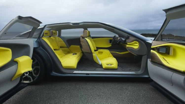 Ein weiteres Merkmal des CXperience sind die gegenläufig angeschlagenen Seitentüren. Entsprechend bequem dürfte sich der Einstieg in den geräumig wirkenden Innenraum gestalten. Hier sorgen die neongelben Sitzbezüge für einen interessanten Kontrast zu den großzügig verwendeten, hellbraunen Holzpaneelen. Zentral auf dem aufgeräumten Armaturenbrett befindet sich ein 19-Zoll-Display mit Split-Screen-Technik. Hier kann der Fahrer auf dem Bildschirm fahrrelevante Informationen ablesen, und der Beifahrer zeitgleich einen Film anschauen.