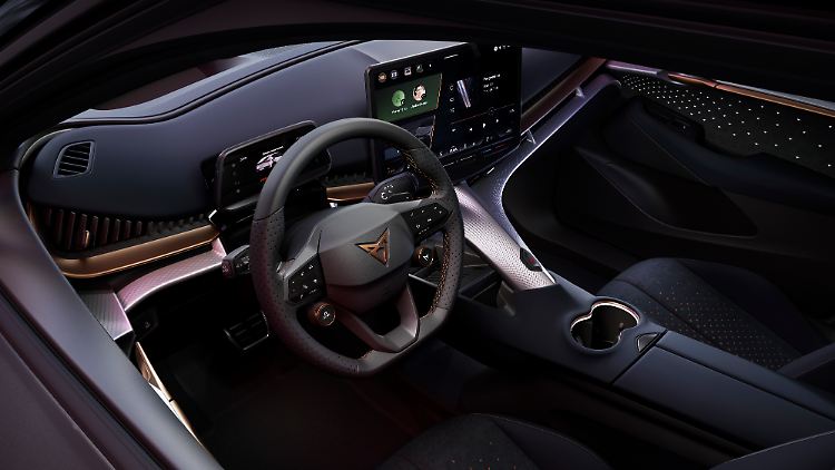 Bei der Weltpremiere in Berlin zeigte das erste vollelektrische SUV-Coupé von Cupra viele Details der Concept Studie von 2019, die auf der IAA in Frankfurt erstmals präsentiert wurde. Blickfang sind das muskuläre Heck, das beleuchtete Cupra-Logo und die Matrix-LED-Scheinwerfer im Dreiecks-Design, die mit etwas Fantasie an die Frontoptik von Lamborghini erinnern. Die Felgen und viele Elemente im Innenraum weisen kupferfarbene Akzente auf, die Markencolorierung von Cupra.