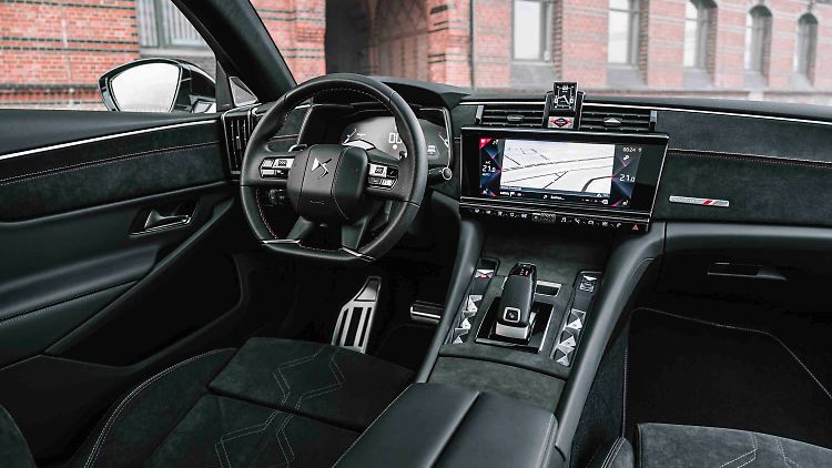 Vorne empfängt der DS 9 seine Gäste mit viel Platz und einem modernen Ambiente mit allerdings einigen ausgefallen Details. Hier bietet DS einen besonderen Pariser Chic auf Manufakturniveau. Ganz dem allgemeinen Trend folgend, thront hinter dem Lenkrad ein 12 Zoll großes Display für alle fahrrelevanten Informationen, während sich zentral im Armaturenbrett ein ähnlich großer Touchscreen als Bedien- und Anzeigeoberfläche für Infotainment, Navigation und viele Fahrzeugfunktionen befindet. Das wirkt insgesamt sehr aufgeräumt. Lediglich in der Mittelkonsole gruppieren sich am unteren Bildschirmrand sowie um den Automatikwahlhebel noch einige wenige Schalter und Knöpfe mit besonderem DS-Touch.