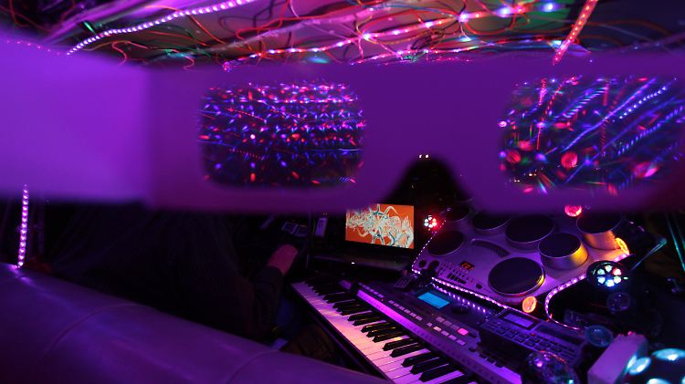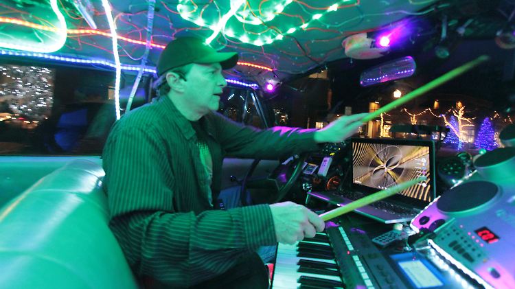 Den Namen verdient sich der gelbe Riese des in New York geborenen Mittfünfzigers zu Recht. Denn Barnes hat den Wagen nicht nur zu einer Art rollenden Disco umgebaut, sondern er selbst spielt während des Fahrens auch noch ein halbes Dutzend Instrumente, singt und macht Zaubertricks.