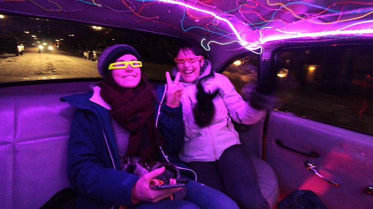 Über mangelnde Nachfrage kann sich der mobile Entertainer dabei nicht beklagen, selbst wenn er für die Fahrt mit dem Ultimate Taxi bis zu 100 Dollar die Stunde nimmt. In der Hochsaison ist er oft über Wochen ausgebucht und auch sonst vergeht kaum ein Abend, an dem er nicht unterwegs ist. Kaum bricht die Dämmerung über dem Skiort herein, kommt er von Glenwood Springs das Tal herauf gefahren, kreuzt, zwei, drei Runden um die Fußgängerzone in der ehemaligen Minenstadt und schon ist seine Fuhre voll. Dann wummern tiefe Bässe aus dem Blech, bunte Blitze zucken durch die Nacht und es beginnt eine Party, wie man sie im Auto nicht oft erlebt.