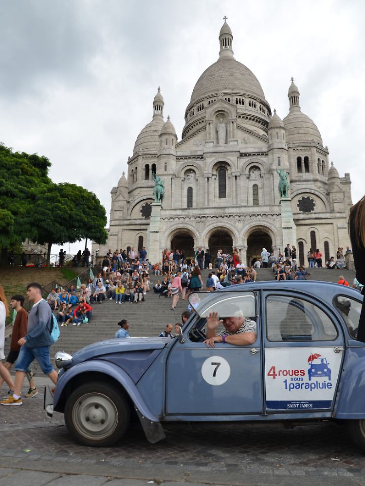 Eine Ente im Pariser Touristenviertel Montmartre: Die Firma 4 roues sous 1 parapluie bietet in Paris Rundfahrten im Citroën 2CV an.