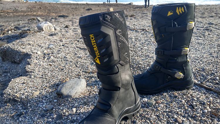 Touratech hat neben einem neuen, sehr kräftigen Enduro- und Cross-Stiefel auch einen neuen Stiefel für Reise-Enduristen entwickelt: Der Destino Touring (280 Euro) ist leicht genug zum bequemen Gehen, bietet aber gleichzeitig einen umfangreichen Schutz für den Fuß und einen stabilen Stiefelschaft. Der Destino Touring ist mit einer äußerst stabilen und stark profilierten Sohle ausgestattet und wird in den Größen 38 bis 48 geliefert.