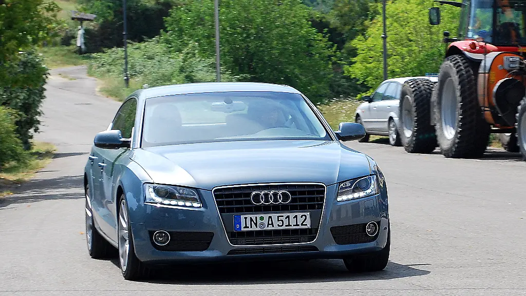 In einer ersten Ausfahrt hatten wir Gelegenheit, den A5 Sportback mit dem 2,7-Liter-Diesel zu fahren. Mit dem 190-PS-Selbstzünder ist eine flotte Gangart auf kurvenreichen Straßen ein Vergnügen. Dank des tiefen Fahrwerks und des langen Radstandes liegt der Sportback ausgesprochen satt auf der Straße. Dieses gute Gefühl wird mit der "Dynamic"-Einstellung des Abstimmungssystems "Drive Select" noch verstärkt. Damit können die Gaskennlinie direkter eingestellt und das Fahrwerk straffer gemacht werden. Auch das relativ geringe Gewicht von 1500 Kilogramm macht sich positiv bemerkbar.