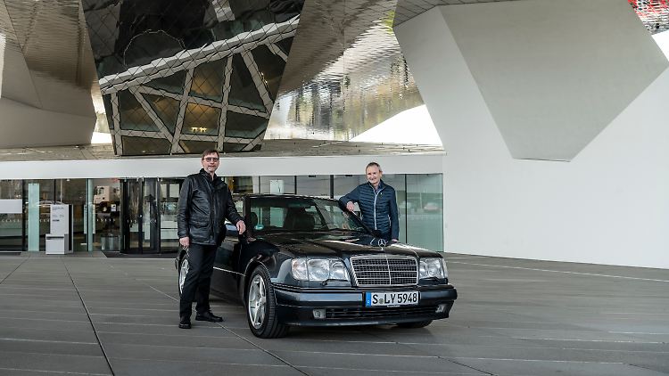 Michael Hölscher (l.) am Mercedes 500 E, den er als Entwicklungschef betreute.