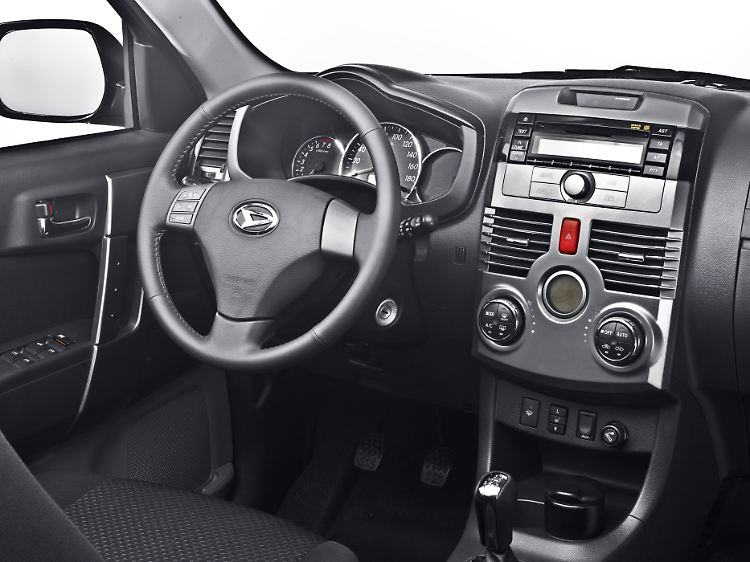 Materialqualität und Verarbeitung gehen angesichts der Preisklasse in Ordnung und sind sicher nicht das entscheidende Kriterium für Kunden, die sich für den Terios interessieren. Alles wirkt robust, zuverlässig und in seiner Einfachheit auch sympathisch. Ärgerlicher sind da schon die zu kurz geratenen Sitzflächen des vorderen Gestühls und die fehlende Längsverstellung des Lenkrads. Eine angenehme Sitzposition, mit der andere SUV einen sicheren Pluspunkt sammeln, ist im Terios daher nur schwer zu finden.