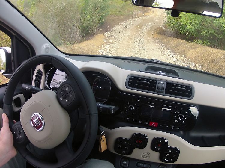 Wer mit dem Panda über Waldwege mit Huckelpiste, den Acker hinterm Haus oder in ausgefahrene Lkw-Spuren holpert, staunt, wie souverän der Kleine das wegsteckt. Mit 160 Millimetern Bodenfreiheit setzt er nicht mehr so leicht auf, mit der elektrischen Servolenkung, die sich per "City"-Taste noch leichtgängiger machen lässt, kann man den Wagen bequem dirigieren. Leider fehlt wie bei so vielen Kleinwagen die Lenkrad-Längsverstellung, die es wesentlich erleichtern würde, eine optimale Sitzposition zu finden. Dass der Multijet-Panda auf dem Geländeparcours mit hochgerechneten sechs Litern Durchschnittsverbrauch seinen Norm-Wert von 4,7 klar verfehlte, ist kein Wunder: Offroad kommt man aus dem zweiten Gang nur selten heraus.