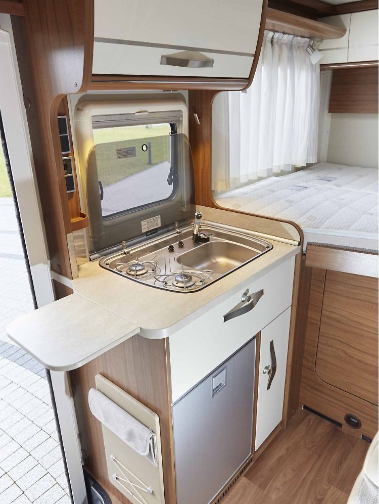 In der alternativen Ausführung als Van S 520 wächst er um gut 80 Zentimeter auf 6,36 Meter von Stoßstange zu Stoßstange. Das ist den längs installierten Einzelbetten im hinteren Abteil geschuldet. Ein Grundriss, wie ihn die Deutschen mit Abstand am liebsten mögen. Für die gestreckte Variante müssen mindestens 3000 Euro mehr bezahlt werden.