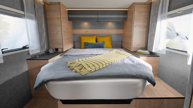 Auf bestem Klassenniveau bewegen sich die Dimensionen des Kühlschanks (142 Liter) sowie der Frisch- (115 Liter) und Abwassertanks (95 Liter). Die Heckgaragen verfügen im Standard über eine Anti-Rutsch-Oberfläche am Boden sowie neue, leichtgängige Dreh-Spannverschlüsse.