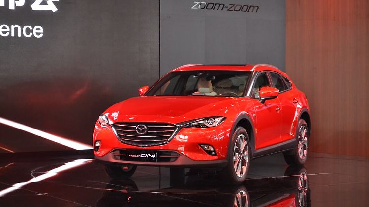 Mazda überrascht in Peking mit einem SUV-Coupé: dem CX-4. Bis auf wenige Details entspricht das Serienauto der Studie Koeru, die bereits im vergangenen Jahr auf der IAA in Frankfurt zu sehen war. Allerdings verzichten die Japaner auf das Blink Blink des Konzepts. Von Chrome-Zierleisten wird nur noch der Kühlergrill gerahmt, der sich hoch über die Scheinwerfer zieht. Auch die Chromleisten über den Radhäusern, über den seitlichen Flanken und an den Türgriffen entfallen. Nicht mal die verchromten Auspuffblenden soll es in der Serie geben. Statt den sportlichen Lufteinlässen über der Stoßstange, die es noch in der Studie gab, sitzen an deren Stellen jetzt die Nebelscheinwerfer.