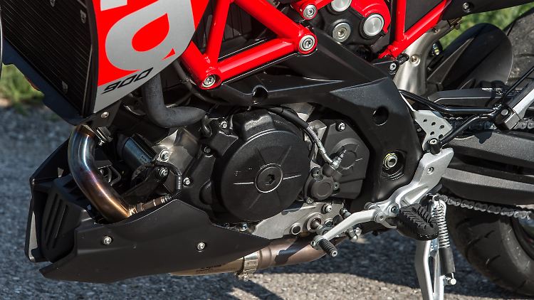 Beim Fahren durchaus spürbar ist die gegenüber der Shiver geringfügig kürzer ausgelegte Endübersetzung. Grund dafür war für die Entwickler, die als "souveräne Supermoto" positionierte Dorsoduro 900 spritziger wirken zu lassen. Auf kurvenreichen Dolomitenstraßen drückt sie kräftig aus engen Kurven und stürmt auf den Geraden energisch vorwärts. Auffällig ist die sehr präsente Leistung im Bereich zwischen 4500 und 7500 Umdrehungen; es ist aber kein Problem, auch bei nur 2500 Touren die Drosselklappen zu öffnen, und auch jenseits der 7500er Marke geht noch was, auch wenn man den allerobersten Drehzahlbereich nicht gerade als Feuerwerks-Abschussrampe werten darf. Bei artgerechter, also durchaus gasiger Fahrweise wurde ein Verbrauch von knapp über 6 Litern auf 100 Kilometer ermittelt. Wer nicht aus jeder Kurve voll herausfeuert, wird den Normwert von 5,6 Litern eher unter- als überschreiten. 200 Kilometer ohne Tankstopp sind angesichts des 12 Liter-Tanks aber das Maximum.