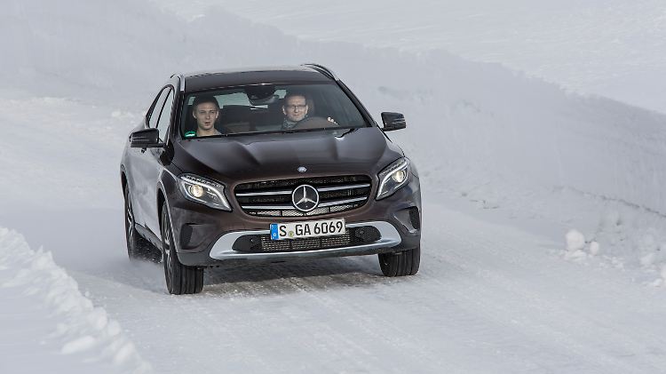 Die Probanden für den Testlauf sind die V-Klasse, der C 400 und der GLA 250. Alle ausgestattet mit 4Matic, versteht sich. Andernfalls wäre das Terrain nicht zu bewältigen. Für die V-Klasse ist der Allradantrieb eine Premiere: Erst jetzt ist die mit 5,12 Meter Länge "größte Luxuslimousine" aus Stuttgart mit diesem Vortrieb zu haben. Befeuert wird der Van von dem bekannten 2,1-Liter-Diesel mit 190 PS. Die C-Klasse ist mit ihrem V6-Motor, 333 PS und 480 Newtonmeter Drehmoment der wuchtigste Bergsteiger. Ob der sich aber besser als seine beiden Kameraden für die Auf- und Abfahrt auf Schnee und Eis eignet, muss er erst noch beweisen. Denn rein von der Sache müsste der GLA 250 mit drei Zentimeter höher liegendem Offroad-Fahrwerk, der 4Matic und 211 PS die Strecke am besten bewältigen.