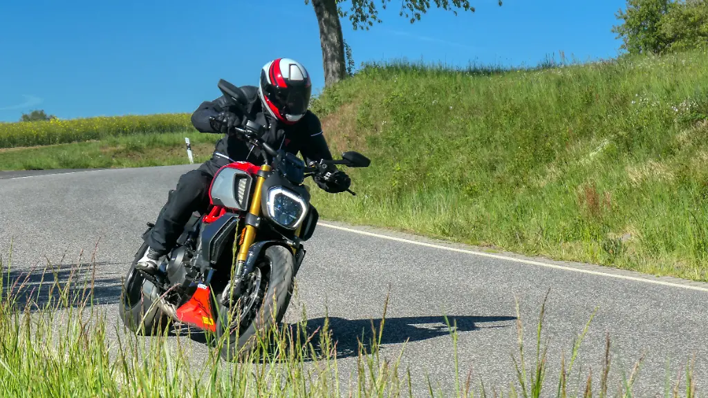 Es ist nachgerade teuflisch, wie man mit der Duc mit dem langen Radstand - er beträgt immerhin 1,60 Meter - unterwegs sein kann. Und diabolisch ist oft das Grinsen des Fahrers unterm Helm, wenn er Fahrmanöver absolviert hat, über die Fachkundige den Kopf schütteln: "Das geht doch gar nicht mit so einem Ding." Doch, es geht. Ok, nicht alles, aber vieles, vor allem viel mehr als gedacht.
