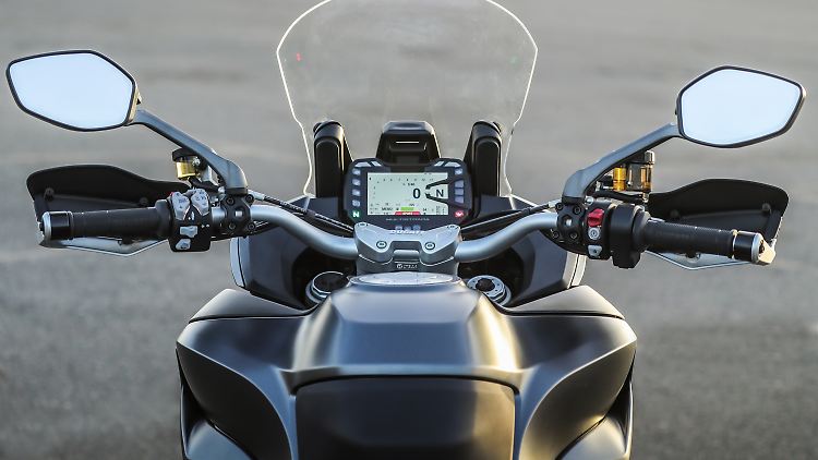 Absolut gelungen sind Fahrkomfort und Ergonomie: Die Sitzposition ist entspannt, Schalter und Hebel am Lenker finden sich fast intuitiv, die wichtigsten sind sogar hinterleuchtet. Deutlich verbessert präsentiert sich die Menüstruktur des umfangreichen Bordcomputers, der ins gut ablesbare TFT-Display integriert ist. Dem einhändig leicht verstellbaren Windschild gebührt die Note gut, der Sitz-Höhenverstellung um zwei Zentimeter nur ein befriedigend, weil dafür Werkzeug benötigt wird. Geringfügig unterhalb des maximal möglichen bleibt die Multistrada bei der Fahrwerkseinstellung: Statt einer vollautomatischen Einstellung der Feder-Vorspannung bedarf es des Knöpfchendrückens – damit kann man aber gut leben.