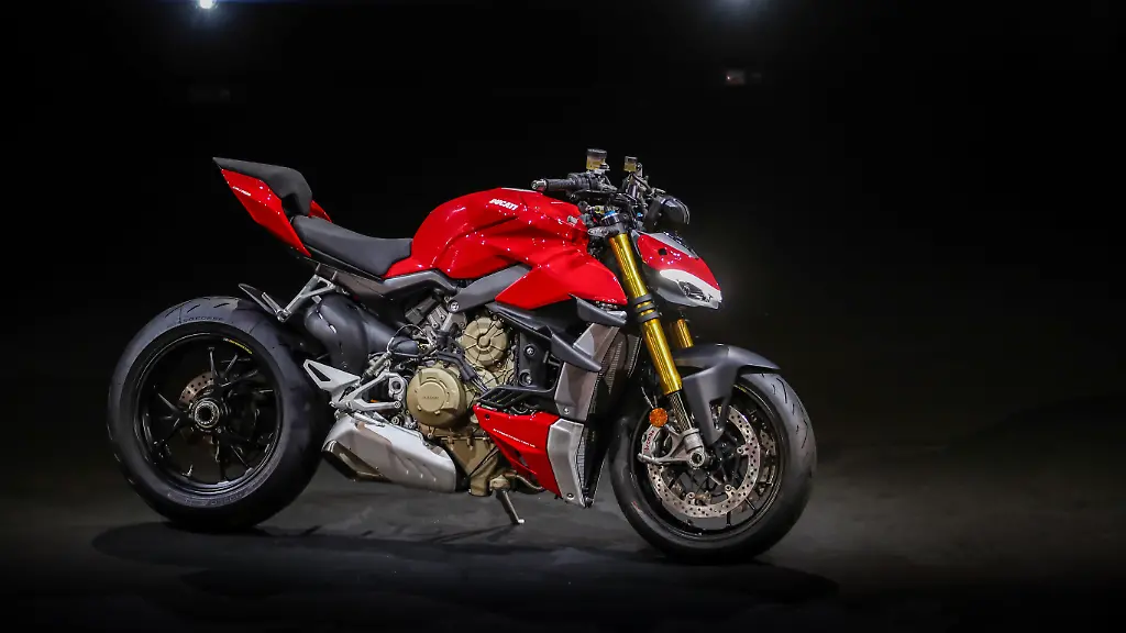Ebenfalls mit Magnesiumrädern und Öhlins-Fahrwerk geht das völlig neue Hyper-Nakedbike Streetfighter V4S an den Start. So ausgerüstet, sinkt das Gewicht im Vergleich zur V4 von 201 auf 198 Kilogramm, während der Preis von 19.990 auf 22.990 Euro klettert. Die Streetfighter V4 basiert natürlich auf der supersportlichen Panigale V4 und nutzt deshalb deren Rahmen sowie auch deren V4-Antrieb. Allerdings wurde der zugunsten von mehr Drehmoment optimiert und die Spitzenleistung von 217 auf 208 PS gesenkt.