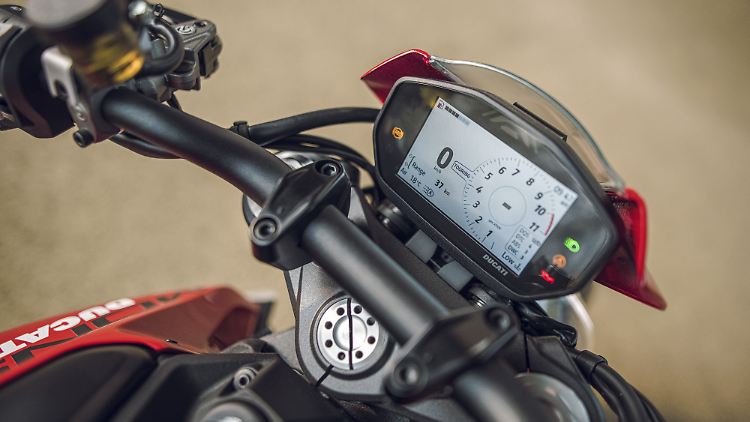 Ein Schwergewicht ist die Monster hingegen beim Elektronikprogramm. Neben drei Fahrmodi, einem einstellbaren Kurven-ABS, Traktionskontrolle und Wheelie Control gibt es sogar eine Launch Control für einen rennstreckentauglichen Race-Start. Alle Funktionen lassen sich über ein 4,3-Zoll-TFT-Farbdisplay steuern, und zwar aus einer auch für nicht so hoch aufgeschossene Fahrer bequemen Sitzhaltung. Ducati hat nämlich die Standardsitzbank auf eine Höhe von 820 Millimetern gesenkt. Wessen Beine jetzt noch etwas kürzer sind, der kann eine niedrige Sitzbank mit 800 Millimetern Höhe ordern oder mithilfe einer speziellen Tieferlegung des Fahrwerks das Ganze auf 775 Millimeter absenken.