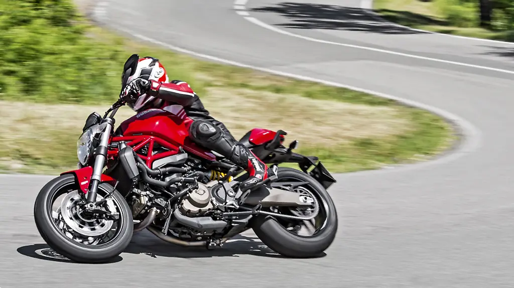Nein, Liebe auf den ersten Blick ist es nicht. Wer die erst dieses Jahr erschienene Monster 1200 mit ihren vielen feinen Details noch vor Augen hat, erkennt schnell, dass die Monster 821 unter einem gewissen Spardiktat entstanden ist. Unter anderem sind die schöne Einarmschwinge und die Verstellmöglichkeiten der USD-Gabel auf der Strecke geblieben. Das wird verständlich, wenn man bedenkt, dass die Monster 821 mit ihrem aufwendigen Testastretta-Motor nicht viel mehr als 10.000 Euro kosten soll. Hat man die Achteinundzwanzig dann aber einen halben Tag durch die Kurven und über die Hügel gescheucht, glänzen des Fahrers Augen, denn er hat eine neue Liebe gefunden: Die Monster 821 ist ein wunderbar zu fahrendes Motorrad geworden, bei dem man keineswegs ständig an die große Schwester, die Zwölfhunderter, denken muss, die zudem noch 3000 Euro teurer ist.