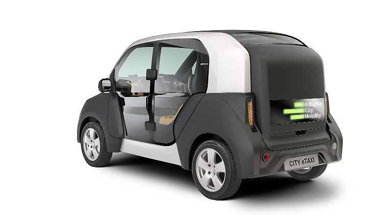 Bei dem City eTaxi handelt es sich um ein nur 3,30 Meter kurzen Dreisitzer, bei dem große Plexiglastüren maximalen Einblick in die Fahrgastzelle erlauben. Dort gibt es mittig platziert einen Fahrersitz. Die beiden seitlich versetzten Fondstühle dahinter erlauben es den Fahrgästen, trotz der kurzen Karosserie relativ viel Beinfreiheit genießen zu können. Eine Konfiguration, die man in ähnlicher Form auch vom einstiegen E-Pionier Mia Electric kennt. Und wie die Mia kann auch das eTaxi Gepäck transportieren. Ein 360 Liter großer Kofferraum wächst nach der Demontage der Rücksitze auf 1300 Liter. Die Zuladung soll 380 Kilogramm betragen.