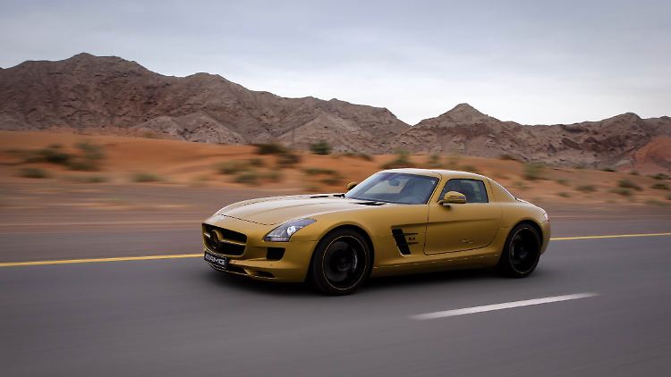 Die Mercedes-Tochter AMG stellt in Dubai einen in satten Goldtönen lackierten SLS ins Rampenlicht. "Weil sich gläubige Moslems nicht selbst mit Gold schmücken dürfen, steht diese Farbe bei ihren Autos hoch im Kurs", erläutert Sprecher Pietro Zollino den Lack. Gemessen am Lexus RX nebenan ist der SLS allerdings eine kleine Leuchte: Der japanische Geländewagen wird während der Messe von Spezialisten aus Paris komplett mit Blattgold überzogen. Das hat aber seinen Preis, sagt Jean-Christophe Rousseau von der Firma Gold Emotion: Für 200 Gramm Goldfolie und vier Tage Arbeit verlangt er rund 40.000 Euro.