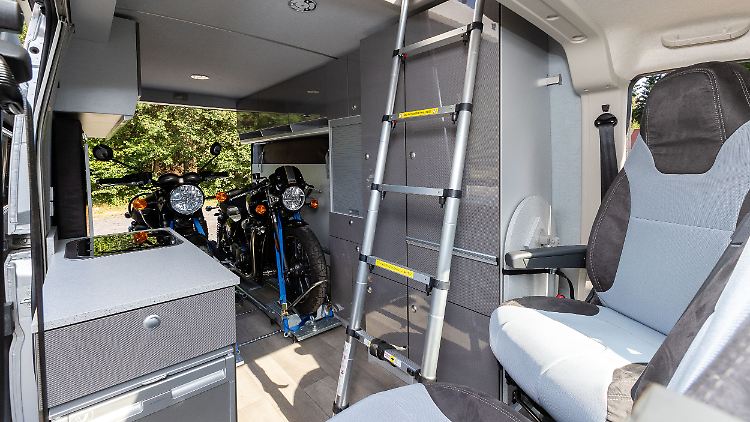 Wer als Laie erstmals den rund 60.800 Euro teuren Citroën Jumper Biker Solution erblickt könnte meinen, da stehe ein klassisches Reisemobil. Profis sehen aber sofort, da fehlt die Nasszelle. Dafür fällt beim genaueren Inspizieren des Innenraums ein anderes Feature ins Auge. Das Technik-Team hat ein spezielles, crashgeprüftes Schienensystem installieren lassen, auf dem ein schweres Motorrad befestigt werden kann. Per motorgetriebenem Mitnehmer und Fernbedienung zieht die Anlage das Bike leise sirrend in den Laderaum. Gut vor allem für allein reisende Fahrer, die das schwere Krad ansonsten irgendwie in den Wagen hieven müssten.