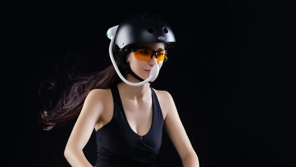 Das akkubetriebene Gerät saugt Umgebungsluft auf, die anschließend in einem Filtermodul gereinigt wird. Diese Reinigungseinheit lässt sich auf der Rückseite eines Fahrradhelms befestigen. Dank eines integrierten LED-Lichts fungiert der eiförmige Korpus dann auch gleich noch als Rücklicht. Von der Rückseite des Helms aus führt ein biegsamer Schlauch mit einem muschelförmigen Ausgabemodul die gereinigte Luft ins Gesicht des Trägers.