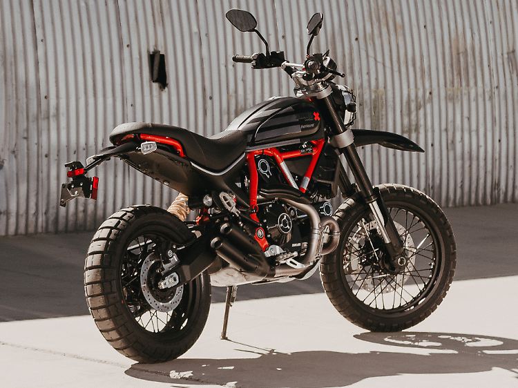 Das heißt, dass der Vortrieb durch einen 803 Kubikzentimeter großen V2 gesichert ist, der weiterhin 73 PS leistet und ein maximales Drehmoment von 66 Newtonmetern auf die Kette wirft. Ansonsten präsentiert sich die Desert Sled Fasthouse in den Hauptfarben Schwarz und Grau. Die Akzente setzt der rot lackierte Rahmen und die Aluplakette mit der fortlaufenden Seriennummer. Denn hier hat Ducati ein limitiertes Sondermodell aufgelegt.